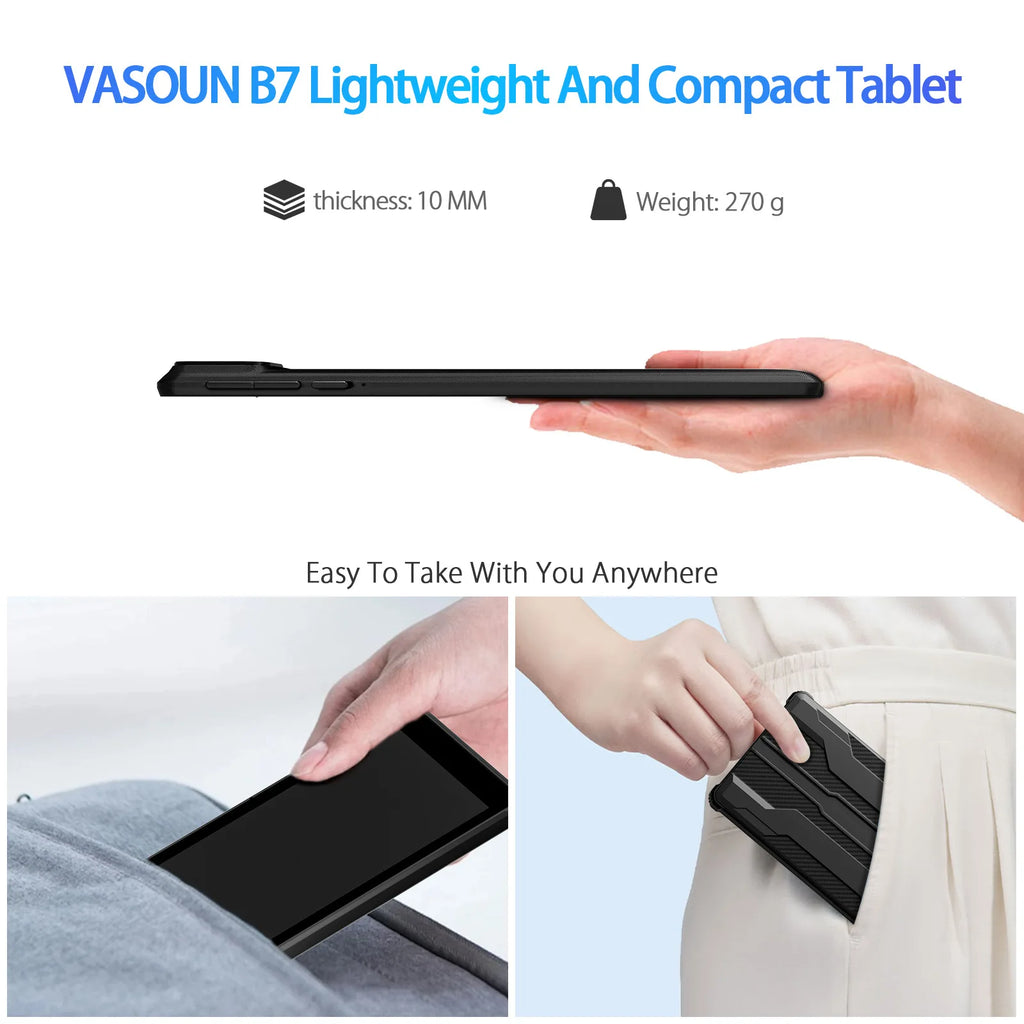 Tablet PRITOM 7” Android 14 – 8GB RAM (Exp.) + 64GB, Octa-Core A523, Wi-Fi 5G/6, Dual Câmera e Design Ultra Slim